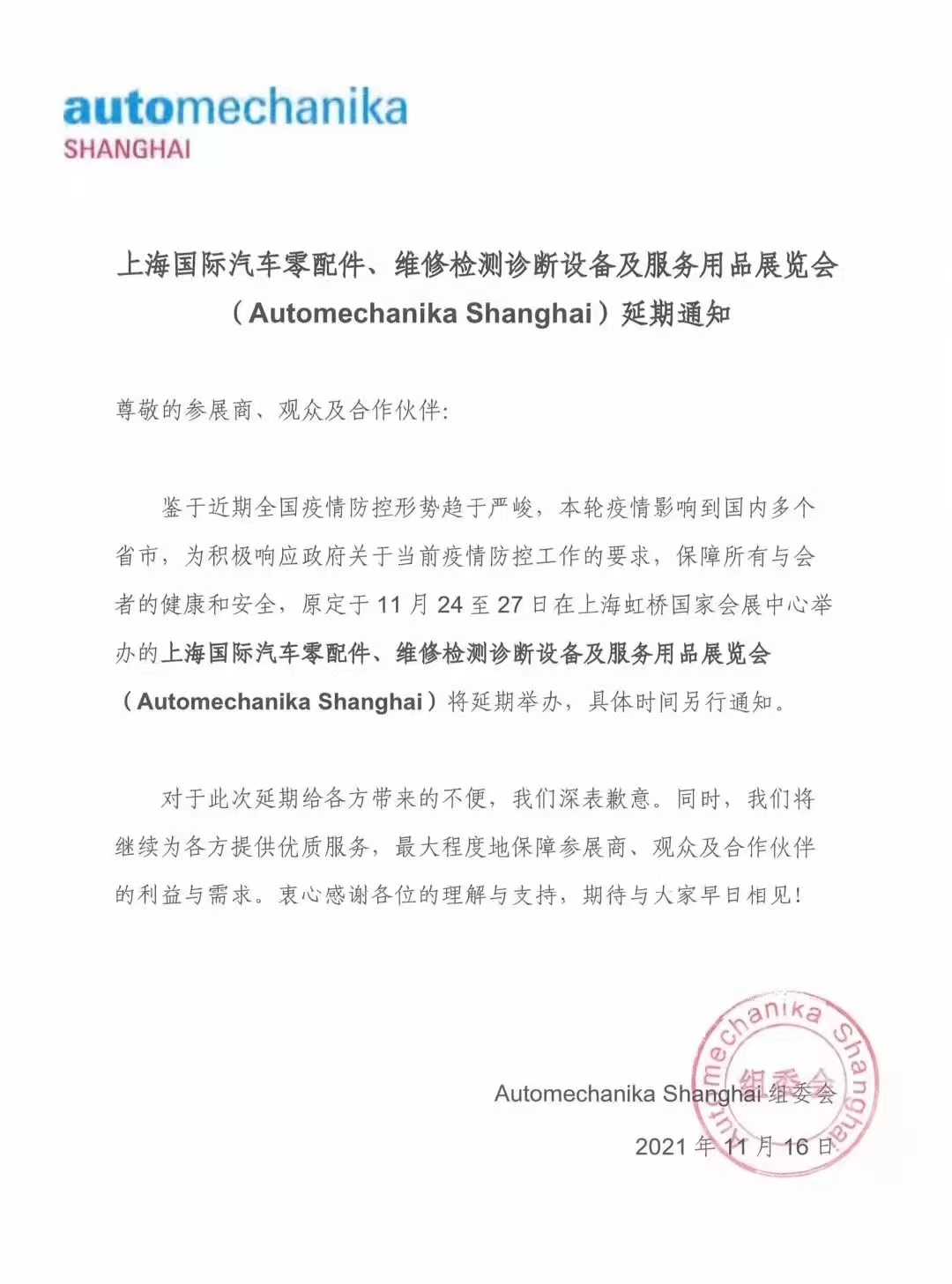 2021上海法兰克福展会延期举行